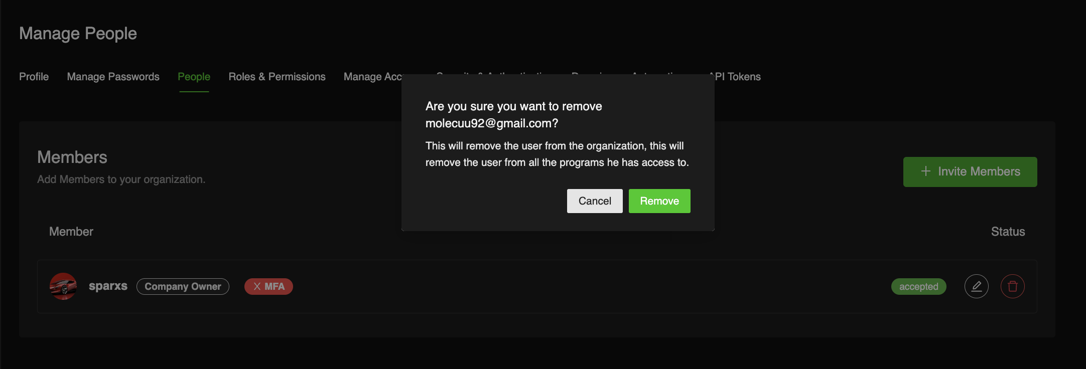 3. Confirm your action - by deleting member from the company will revoke their access from all the programs that they have been added into.