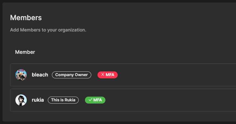 You can also view if the member has enabled multi-factor authentication (MFA) on their BugBase account or not as an additional security measure.
