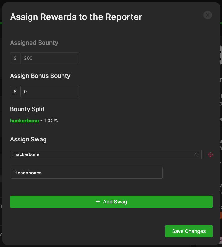 Program managers can assign rewards to the hacker who submitted the report as a token of appreciation or reward for their contribution.&#x20;
