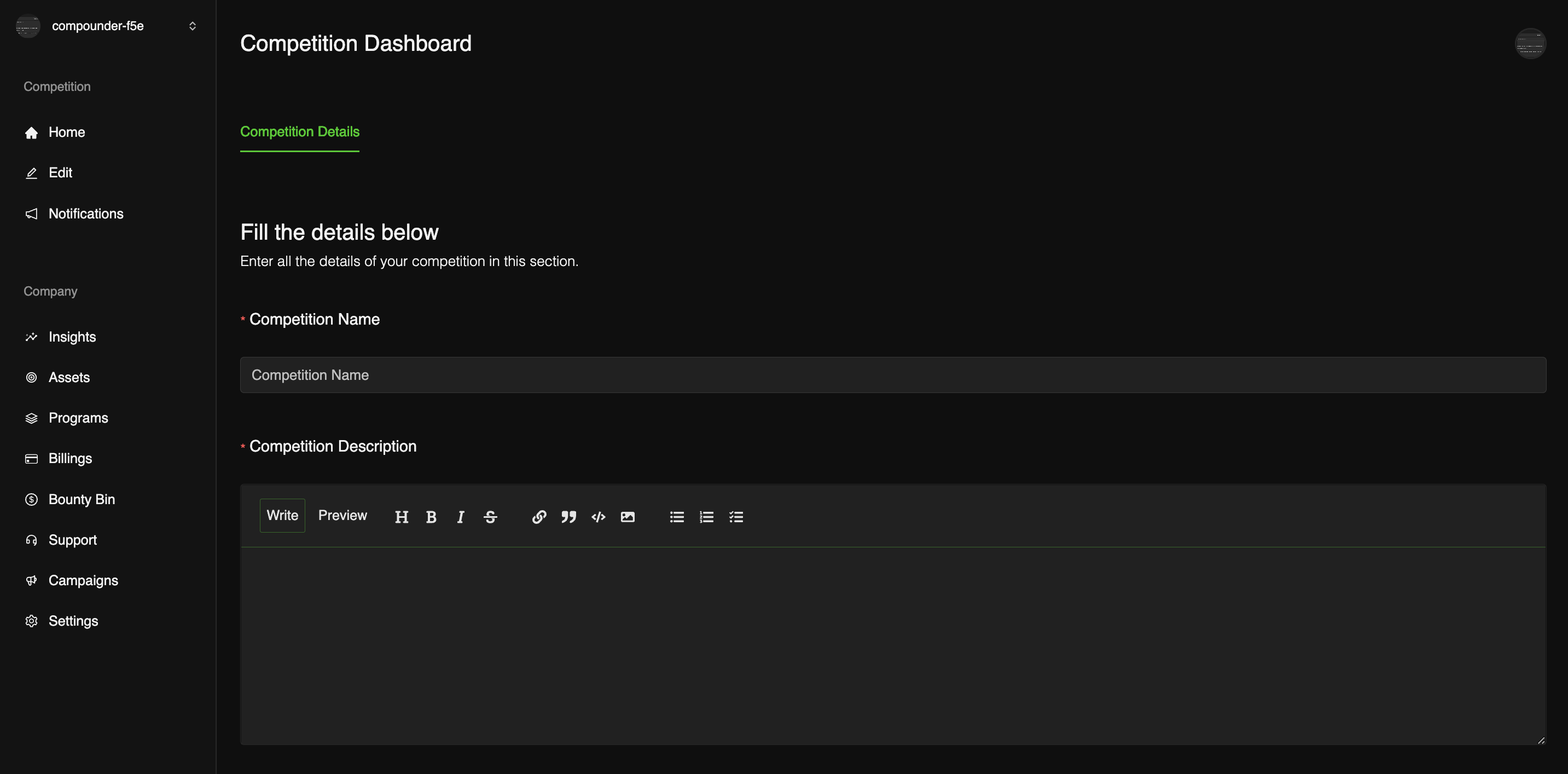 Once you add Competition Name, Description, Start Date and Time, End Date and Time & Rewards information, you can start adding challenges.